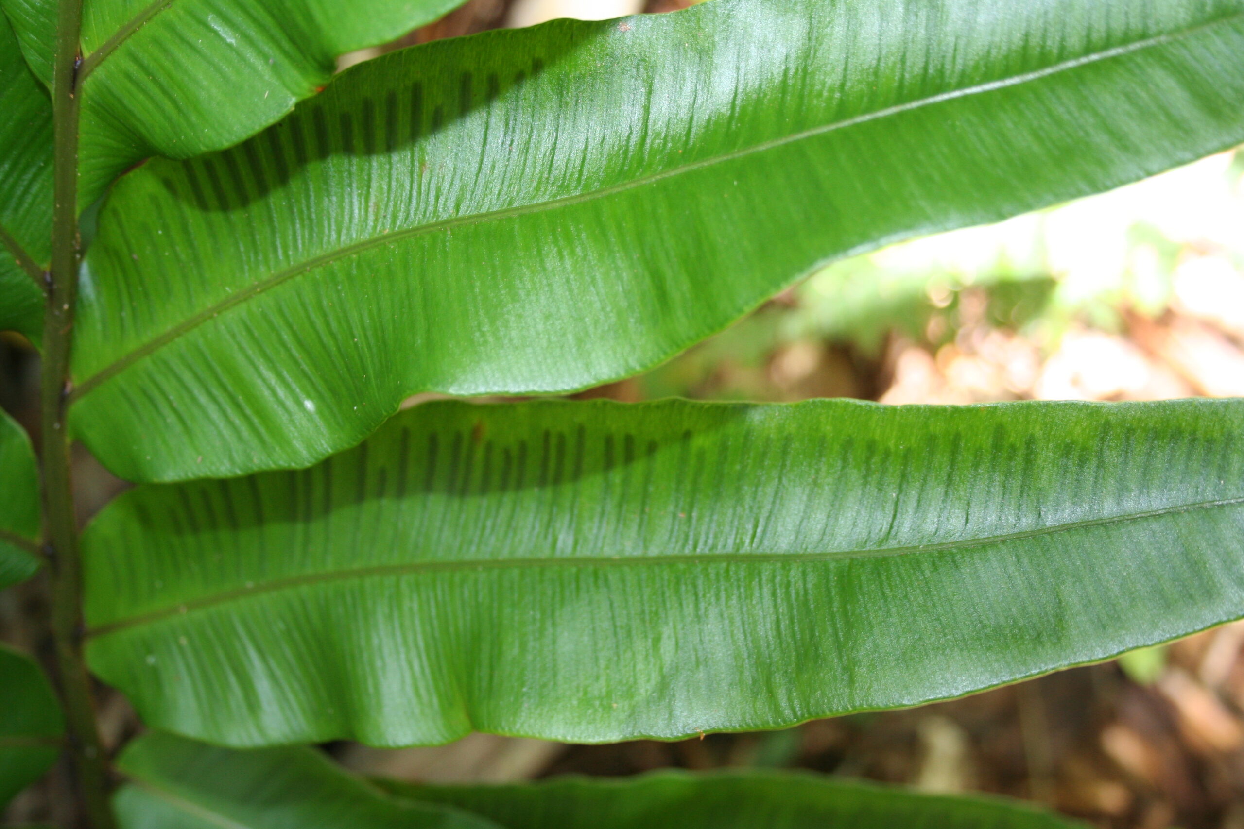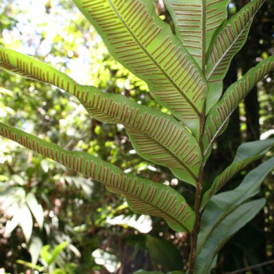 Desmophlebium lechleri is widely distributed in the neotropics, from Costa Rica to Peru and Brazil. As you can see here, it has an incredible ornamental potential, which is so far underexplored. Plants can be recognized by an apical segment that is nearly identical to the lateral pinnae, the crowded, straight sori borne at nearly right angles to the costa, and the mostly simple veins that are free almost to the margin, where they join an inframarginal vein.