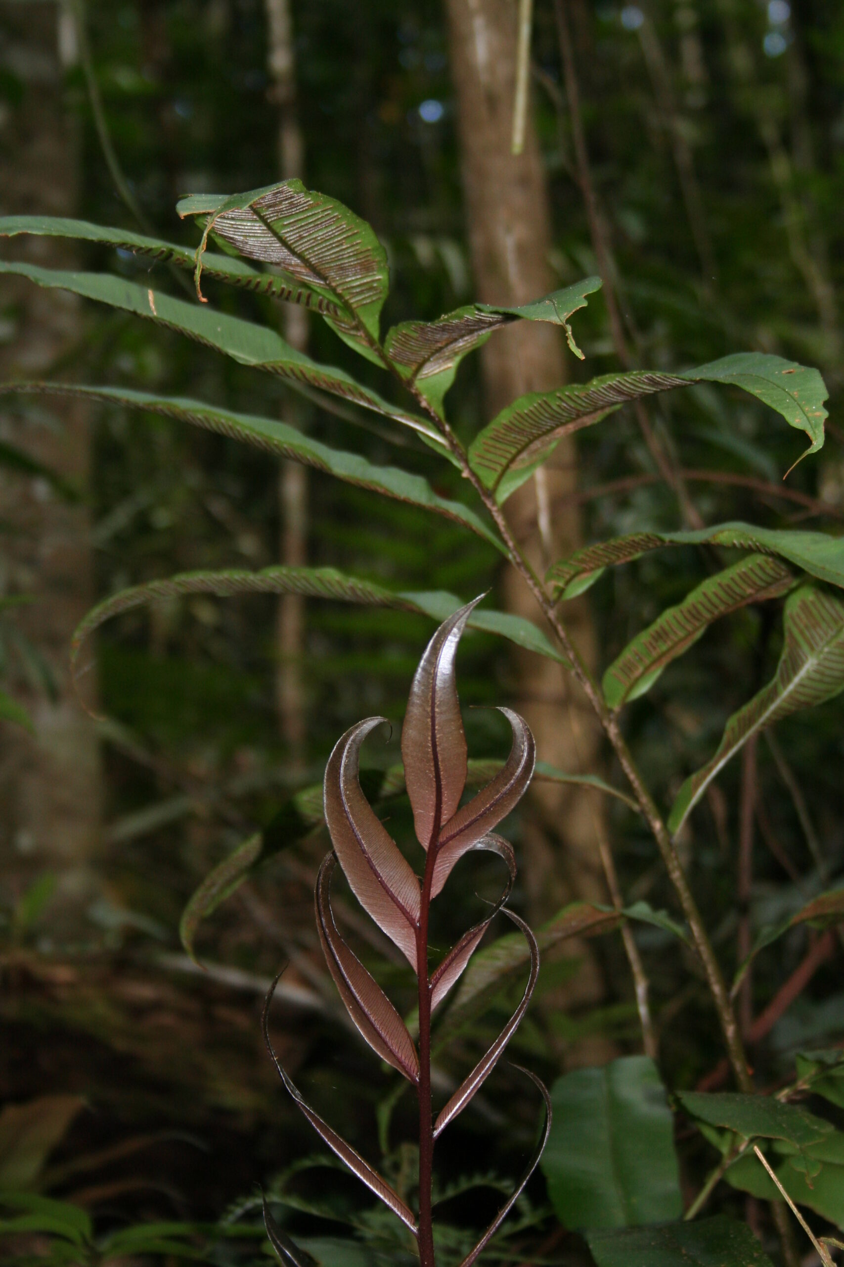 After seeing these photos of D. lechleri, I really felt that it is a weird guy in this genus, not just because of the reddish leaf, but also the grooveless petioles. Actually, I begin to consider it as other affinity such as Blechnaceae or Hemidictyum. Anyway, this is just my personal opinion