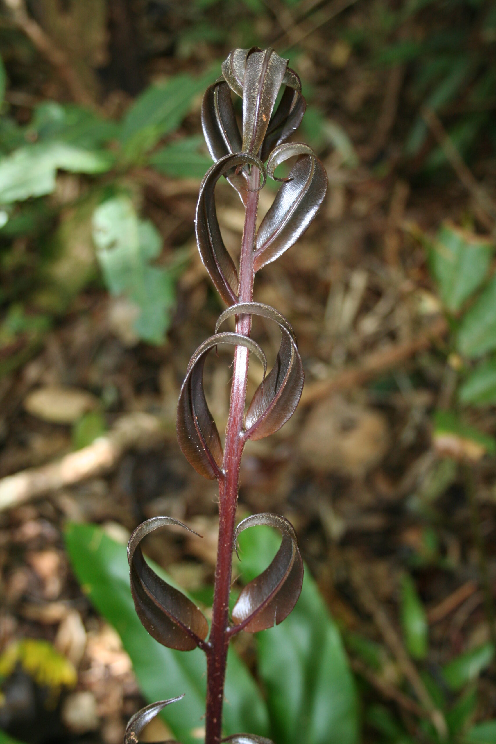 I remember an example of the reddish leaves also appear in a Elaphoglossum species which holds a critical position in this genus- E.amygdalifolium. In this case this species is also regarded as weird and reddish leaves are not found in other Elaphoglossum species.Perhaps, similar to the E case, the D. lechleri case also may have some interesting findings.