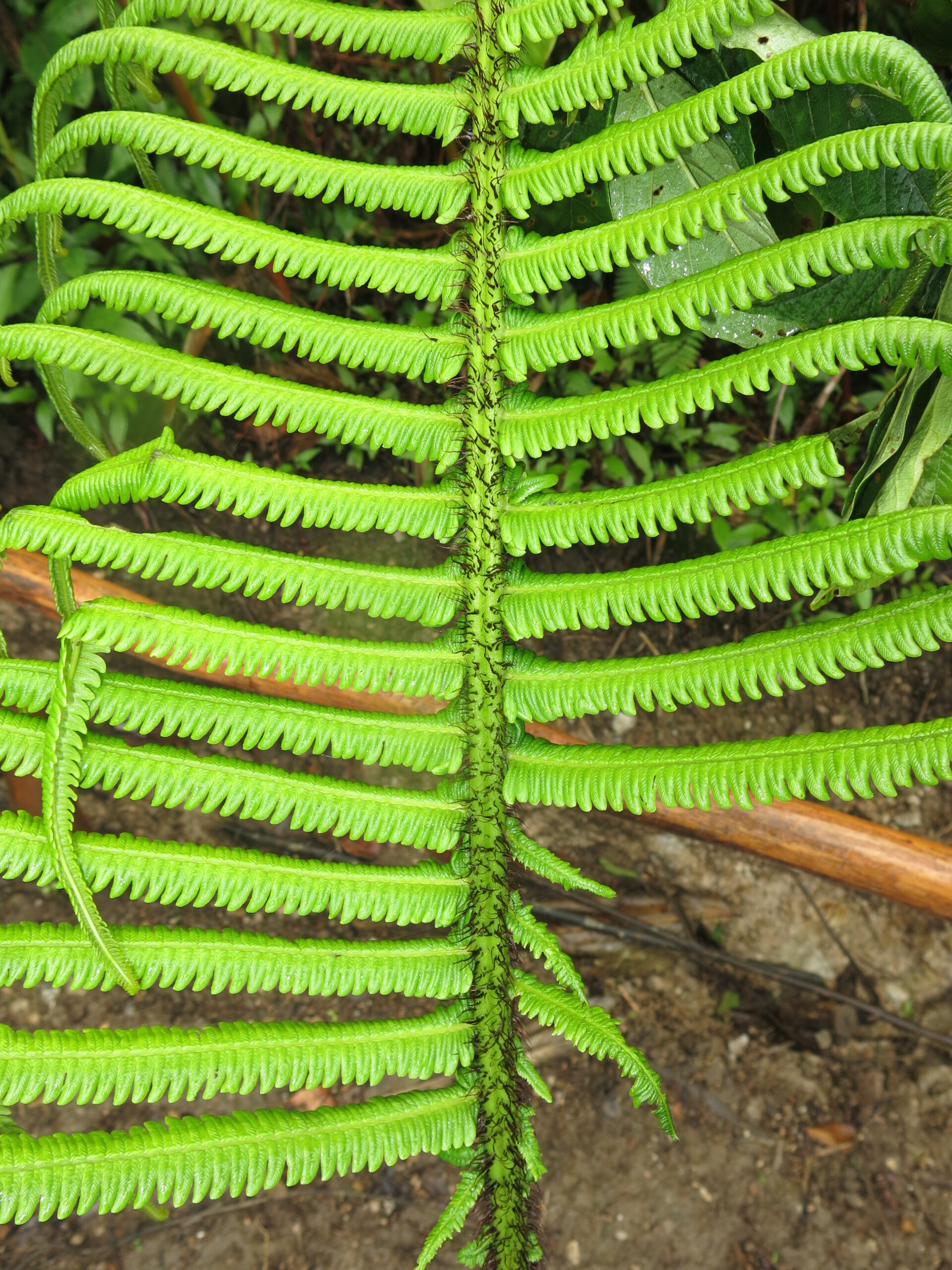 Actually, I just remembered that I did hear about this genus before. The stipe scales of Chingia resemble those of the “subulate-scaled clade” of Elaphoglossum (sensu Rouhan et al. 2004). These scales are often mistaken by hairs because of their slender and bristly appearance, but at higher magnification it can be seen that they are enrolled lengthwise to form a tubular structure. Despite being highly distinctive in Elaphoglossum, it seems that subulate scales have evolved several times in the fern phylogeny. I also know a few examples in Ctenitis (e.g., C. erinacea and C. hemsleyana).