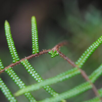 Stenochlaena palustris is a common fern in tropical Asia. The long creeping rhizomes climb several meters into trees or in some cases form thickets. A nectary develops at the base of each pinna. These attract a variety of ants. Like other Blechnaceae, the young leaves...