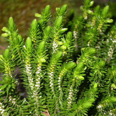 Observations: An uncommon and localised terrestrial Huperzia growing in small clusters of clumps in shallow humus on a rock ledge. Bright shiny green. Strobili with many bulbils.