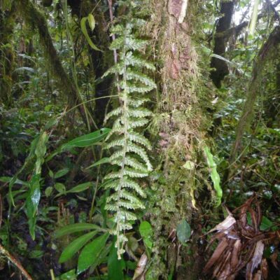 The leaves of Antrophyum reticulatum growing in the shade are iridescent, and appear metallic blue. Leaves growing in more sun are green.